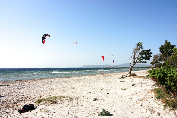 Le sud et le nord de la Sardaigne sont venteux et possèdent de nombreuses plages propices au kitesurf.